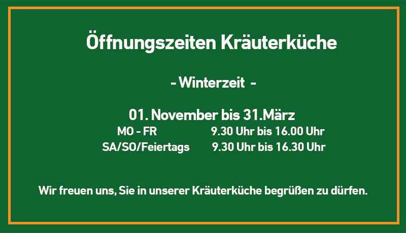 - Unsere Kräuterküche hält täglich ein Imbissangebot und wechselnde kleine Gerichte für Euch bereit.