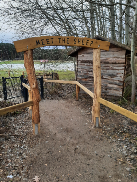 Bei Euren Erkundungen im Gelände findet Ihr einen Balanzierbalken, ein Spielhaus, Schaufeln eines Elches für ein Fotomotiv, das Meet-the-Sheep und die Stempelsafari.